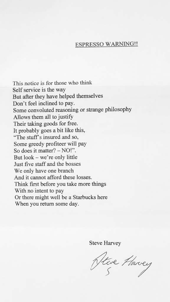 It is always a great shame when something gets stolen from the shop but sadly it does sometimes happen. As a small trader trying to make ends meet is quite a struggle with the cost of West End rates so when gear goes missing it hits us hard. We don't lose too much from the shop but we suffered from a lot of pilfering at the London Boat Show. Steve, our expert at ropework of all kinds, hasn't been too well recently. Unknown to most people is the fact that Steve is a gifted poet, not in the Coleridge sense but think more of Gilbert and Sullivan, so the crew in the shop decided they should relieve Steve's boredom at home by commissioning a poem about shoplifting!